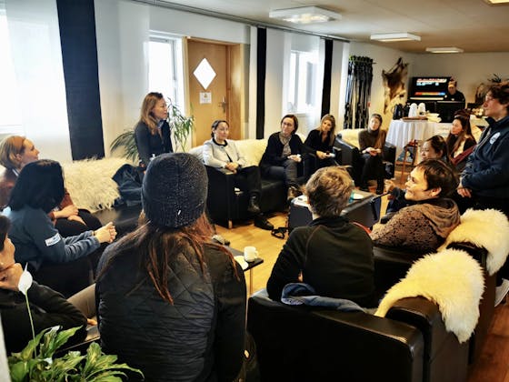 HER Planet Earth in a meeting with local female leaders in Sisimiut, Greenland, to discuss how climate change has affected their lives.