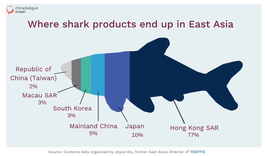 Shark fin is a traditional delicacy in Hong Kong. Half of all shark fins harvested are either consumed in this tiny territory or pass through it on the way to other markets. Most of those fins come from vulnerable or endangered populations.