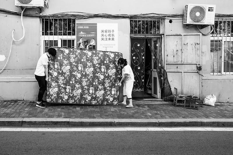 A couple moving a used mattress in China. Gauthier Delecroix / Flickr