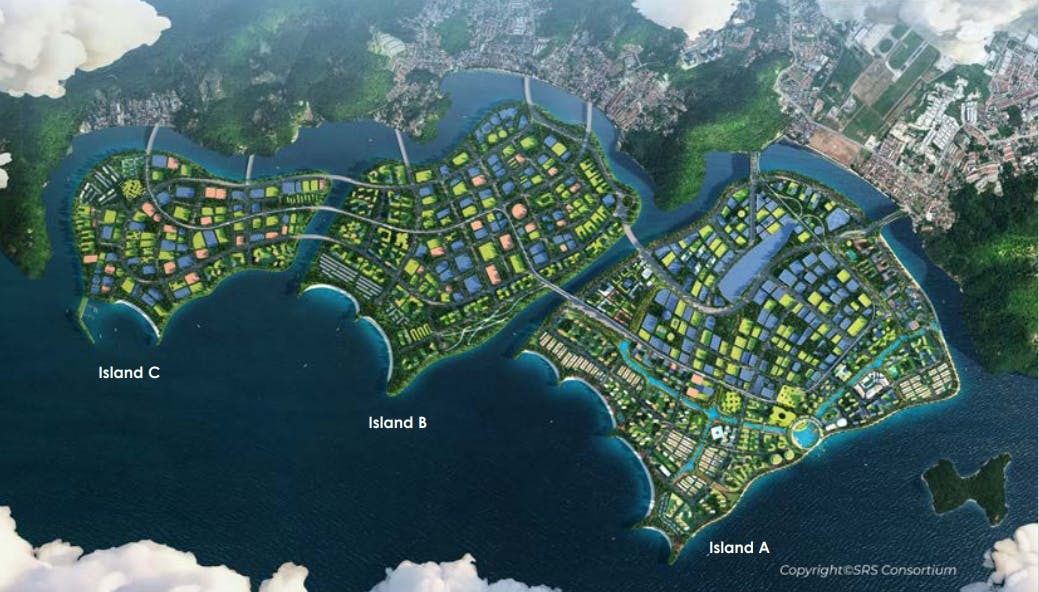 An artist's impression of the three new islands to be build on reclaimed land off of the south of Penang's main island. Image: SRS Consortium/ Penang Transport Master Plan & Penang South Islands booklet