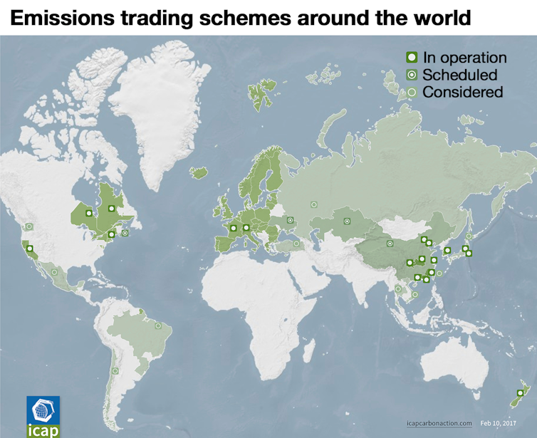 China will add to the cluster of national and sub-national emissions trading schemes that now exist in the European Union, Canada, the United States, Japan, South Korea and New Zealand.