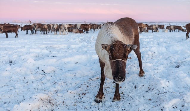 Lone reindeer roams away from its Nenets reindeer herder. In Northern Russia, reindeer died en masse and nomadic herders were hospitalised due to anthrax, believed to have been triggered by warmer temperatures. Image: Evgeniy Volkov, CC BY-NC-ND 2.0