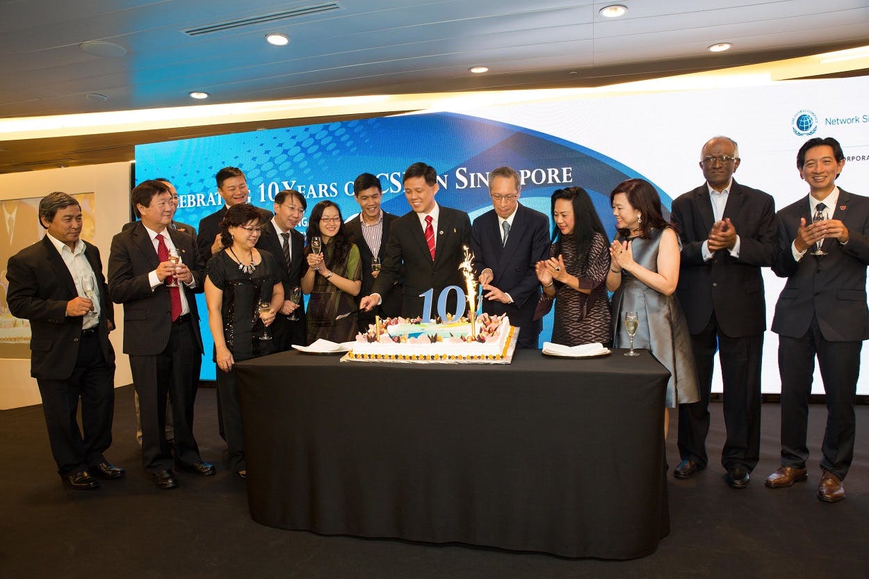 Members of the Global Compact Network Singapore marking the group's 10th anniversary. Image: Global Compact Network Singapore